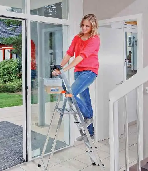 • aluminijumske stepenaste merdevine sa širokim, neklizajućim gazištima i sigurnosnim rukohvatom