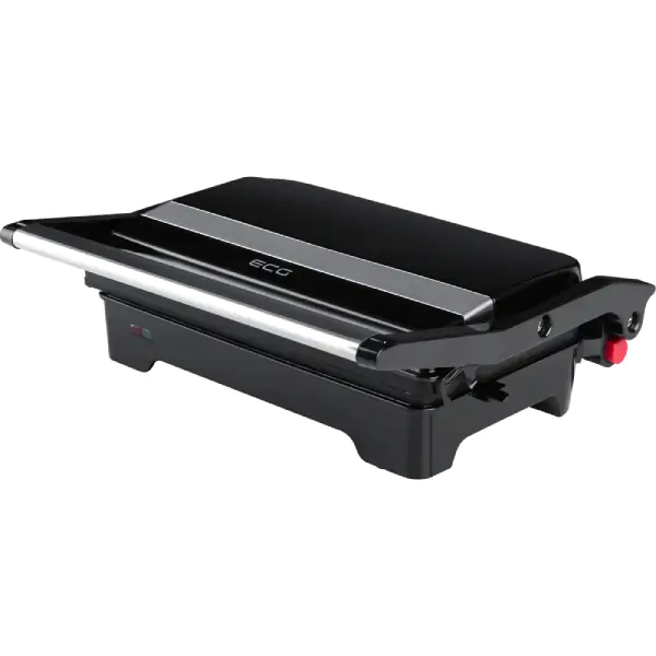 • ECG panini grill sa mogućnošću potpunog otvaranja od 180° predstavlja svestranog kuhinjskog pomoćnika koji vam omogućava pripremu zdravih i ukusnih obroka bez dodavanja masti, od panini sendviča i tosta do mesa, povrća i ribe. Sa režimom punog otvaranja (180°), grill se pretvara u prostranu površinu za roštiljanje, idealnu za pripremu obroka za celu porodicu. Nelepljive ploče za pečenje dimenzija 165 x 260 mm omogućavaju zdravu pripremu uz minimalnu količinu masti, dok uklonjiva posuda za sakupljanje ulja i masnoće olakšava održavanje čistoće. Lakirano kućište od nerđajućeg čelika sa crnim akcentima daje uređaju moderan i elegantan izgled. Toplotno izolovana ergonomska ručka obezbeđuje sigurno rukovanje, a mehanizam za zaključavanje omogućava jednostavno nošenje i kompaktno skladištenje. LED indikatori jasno signaliziraju uključenost i dostignutu temperaturu, dok automatska kontrola temperature garantuje ravnomerno pečenje svaki put.