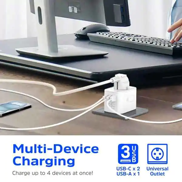 • Opremljen sa dva USB-C porta i jednim USB-A portom, ETC450 omogućava fleksibilno punjenje više uređaja istovremeno. Glavni USB-C1 port podržava Power Delivery (PD) tehnologiju sa izlaznim parametrima: 5V⎓3A, 9V⎓3A, 12V⎓3A, 15V⎓3A i 20V⎓2.25A, što omogućava brzo punjenje do maksimalno 45W. USB-C2 port pruža izlaz od 5V⎓2.4A, dok USB-A port podržava 5V⎓3A, 9V⎓3A, 12V⎓2.5A i 20V⎓1.5A.