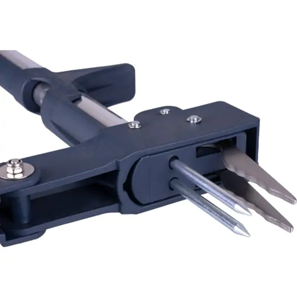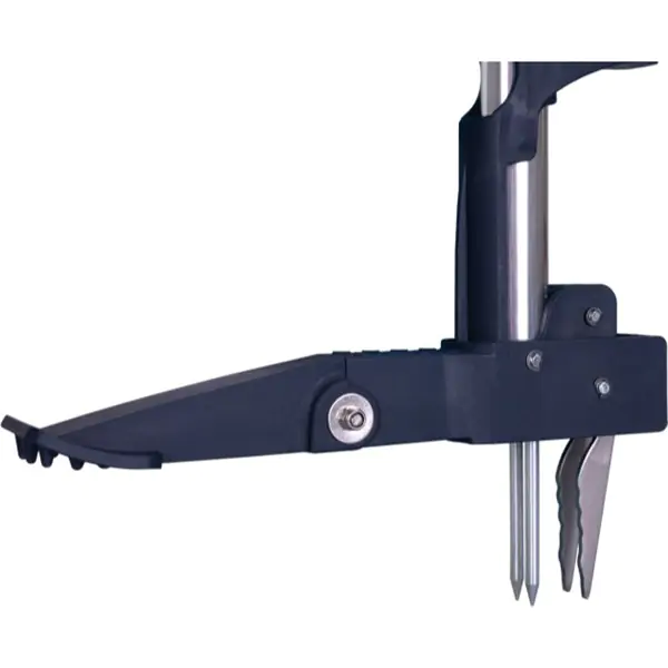 • Zahvaljujući polužnom mehanizmu, čeljusti čupača se snažno stežu oko korena biljke, omogućavajući njegovo čisto i efikasno vađenje iz zemlje. Oštrica dužine 80 mm lako prodire u tlo, dok pomoćni nožni oslonac dodatno olakšava rad, naročito na tvrđem ili zbijenom zemljištu.