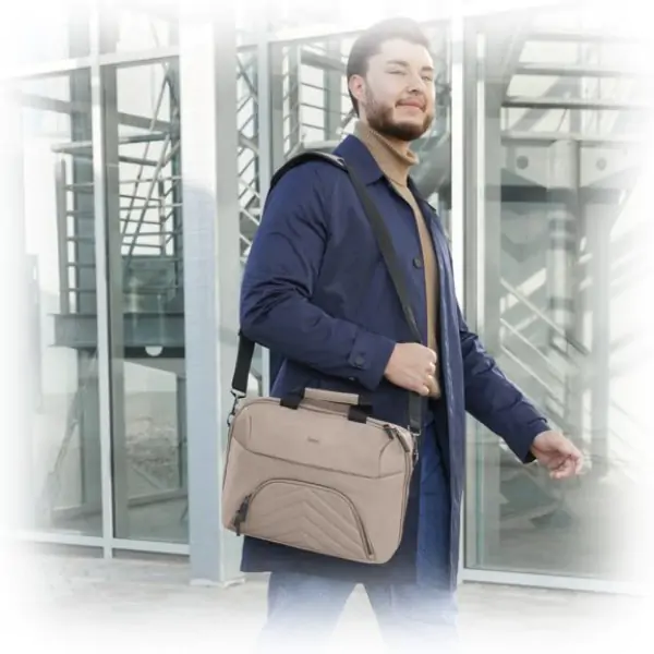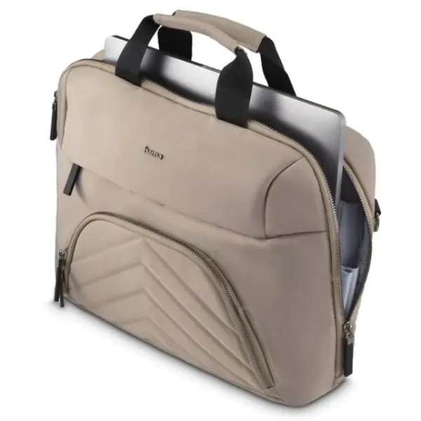 Hama Premium Lightweight laptop torba 13.3–14.1" (bež) predstavlja elegantno i ekološki odgovorno rešenje za bezbedan transport laptopa. Izrađena je od 100% recikliranog poliestera (R-PET), izuzetno je lagana i udobna za svakodnevnu upotrebu. Torba ima postavljenu pregradu koja štiti laptop dijagonale od 34 do 36 cm (13.3"–14.1"), kao i dodatnu pregradu za tablet do 28 cm (11"). Prednji organizovani džepovi omogućavaju odlaganje poslovnih dodataka i ličnih stvari. Uz podesivu naramenicu, praktične ručke i traku za kačenje na kofer, torba je idealna za putovanja i poslovne korisnike.