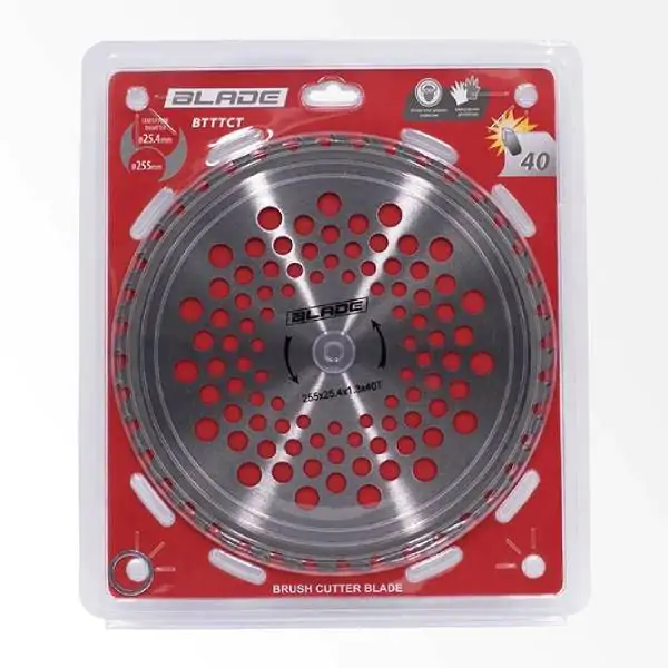 • Uvereni u snagu, efikasnost i dugovečnost, BLADE BTTCT kružna testera za trimer predstavlja profesionalno rešenje za najzahtevnije radove čišćenja terena i održavanja zelenih površina. Prečnika 255 mm i debljine 1,3 mm, sa otvorom od 25,4 mm, kompatibilna je sa većinom profesionalnih trimera i kosilica. Opremljena je sa 40 ojačanih zuba sa karbidnim vrhovima (TCT), zavarenih u ATB profilu, koji bez napora seku korov, žbunasto rastinje, grane do 10 cm debljine, kao i ratarske kulture poput soje i ječma. Brojni kružni otvori na telu diska obezbeđuju efikasno hlađenje i značajno smanjenje buke pri radu, dok završna obrada protiv korozije (nikl, hrom) produžava vek trajanja i održava sjaj sečiva. Idealan izbor za komunalne službe, poljoprivrednike i profesionalce koji zahtevaju brzinu, pouzdanost i čist rez.