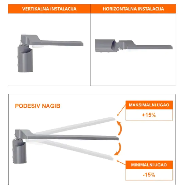 • Montaža: Na stub (vertikalno ili horizontalno, nagib podesiv +/-15°)