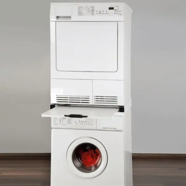 Univerzalni nosač omogućava sigurno i stabilno postavljanje mašine za sušenje na veš mašinu. Idealno rešenje za male prostore i optimizaciju prostora u vašoj kuhinji ili vešernici. Brza i jednostavna instalacija čini postavljanje jednostavnim, dok fioka sa ručkom omogućava lako izvlačenje i korišćenje. Traka za nošenje dodatno osigurava uređaje i sprečava neželjeno pomeranje. Komplet je kompatibilan sa svim jedinicama standardne površine od 60x60 cm.