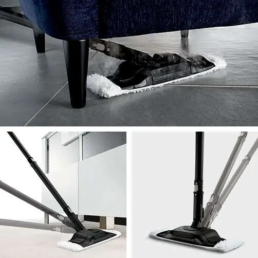 • Ergonomsko, efektivno čišćenje sa punim podnim kontaktom kod svake visine tela zahvaljujući fleksibilnom zglobu mlaznice.