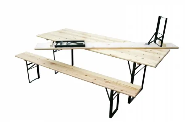 Pivski set za sedenje drveni STOUN 200x90cmSet za sedenje sadrži drveni rasklopivi sto dimenzije 200x90cm i dve drvene klupe rasklopive dimenzije 200x ...