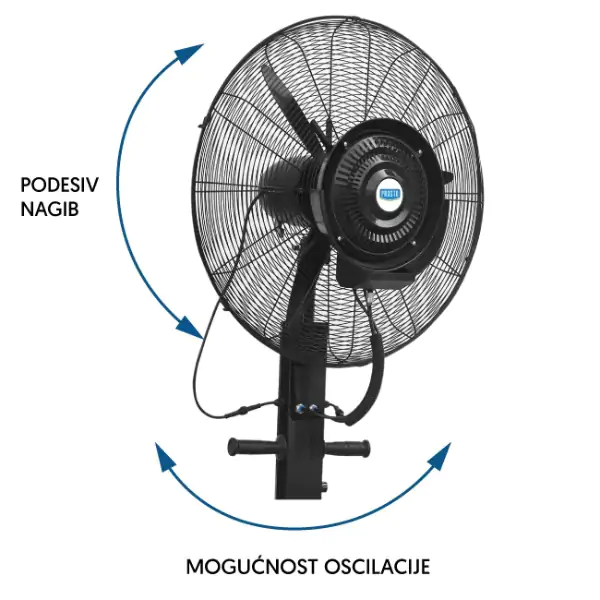 • PROSTO metalni ventilator sa raspršivačem vode predstavlja savršeno rešenje za efikasno i prijatno hlađenje tokom vrelih letnjih dana, kombinujući snažan protok vazduha sa osvežavajućim vodenim raspršivačem. Pokreće ga indukcioni motor sa visokokvalitetnim bakarnim namotajima, koji obezbeđuje dugotrajne i stabilne performanse, dok podesivi raspršivač vode stvara finu vodenu maglu koja trenutno snižava temperaturu i osvežava prostor. Idealan je za upotrebu u različitim okruženjima – od kućnih terasa i bašti do komercijalnih prostora kao što su kafići i restorani, a dodatno doprinosi filtraciji polena i prašine iz vazduha. Zahvaljujući velikom rezervoaru kapaciteta 41 litar, obezbeđuje neprekidno osvežavanje do 8 sati sa jednim punjenjem, eliminišući potrebu za čestim dopunjavanjem. Ventilator je opremljen točkićima i ručicama za lako pomeranje, dok čvrsta i izdržljiva metalna konstrukcija garantuje dugotrajnu upotrebu i stabilnost. Funkcija oscilacije i podesiv nagib glave omogućavaju ravnomerno hlađenje celog prostora i prilagođavanje prema željama korisnika. Po potrebi, ventilator se može koristiti i samostalno, bez uključivanja raspršivača.