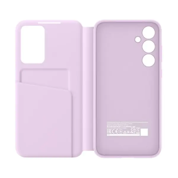 Samsung Smart View preklopna futrola za Galaxy A35 5G u lavanda (ljubičastoj) boji kombinuje zaštitu i praktičnost. Futrola ima prozorćic na prednjoj strani, koji omogućava pregled poruka i dolaznih poziva, kao i kontrolu muzike, bez otvaranja futrole.