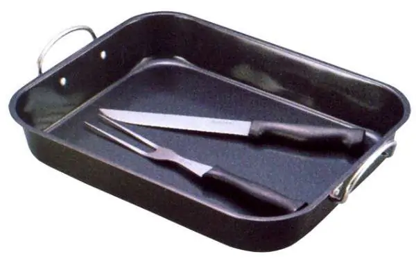 tepsija sa ruckama dim.: 37x28cm., noz i viljuska za serviranje/secenje pecenja,..