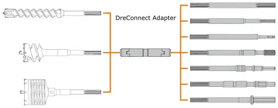 Sa adapterom DRECONECT možete produžiti SDSMAX pribor do odgovarajuće dužine. DRECONECT se postavlja između burgije i nastavka koji se proizvodi ...