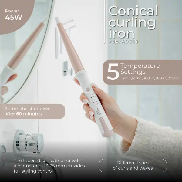 • Naziv proizvoda: ADLER AD2119 stajler za kosu konusni 13-25mm