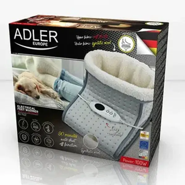 Adler AD7432 grejač za stopala je praktičan i udoban uređaj dizajniran za zagrevanje hladnih stopala, idealan za osobe sa problemima cirkulacije ili one koji žele dodatnu udobnost. Napravljen od kvalitetnih materijala, spoljašnji deo je od mekog pliša i sunđera, otporan na prljavštinu, dok se unutrašnja podstava od sintetičke vune može lako ukloniti i prati ručno na 40°C. Grejač je pogodan za stopala do veličine 46.