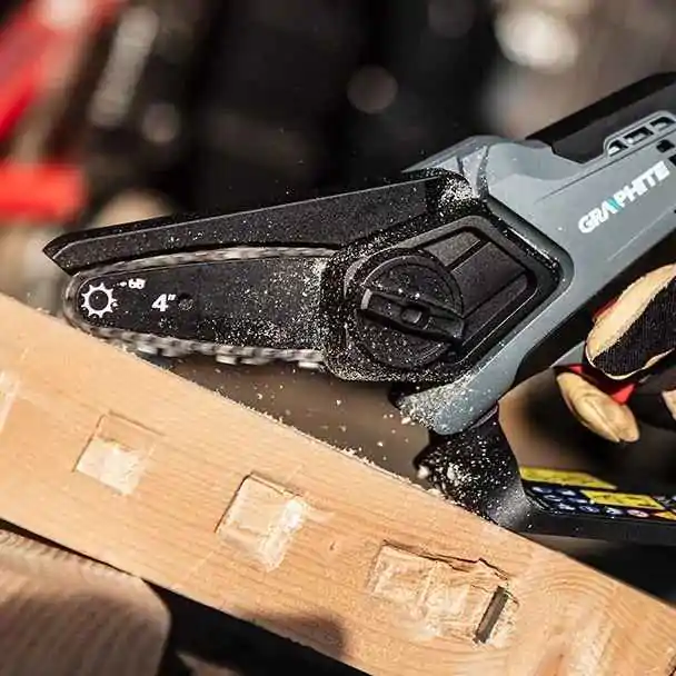 Akumulatorska lančana testera GRAPHITE 58G043 (Energy+) 36V bez četkica idealna je za radove u baštama, voćnjacima i pri održavanju zelenih pov ...