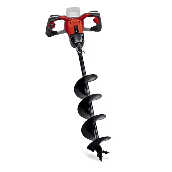 • Einhell akumulatorski bušač rupa GP-EA 18/150 Li BL-Solo je impresivan pomoćnik baštovanima za rad u dvorištu i bašti, kao i pri obavljanju drugih poslova, kao što je postavljanje stubića za ogradu, postavljanje dekoracija u zemlju, pa čak i postavljanje kružnih temelja. Akumulatorski bušač rupa dolazi sa burgijom (80 cm dugačkom / 15 cm u prečniku). Ovaj akumulatorski bušač rupa je član Power X-Change porodice kompanije Einhell, pa se baterije sa visokokvalitetnim litijum-jonskim ćelijama mogu kombinovati sa svim uređajima iz ove serije sistema. Baterija i punjač nisu uključeni. Oni su dostupni odvojeno. Za rukovanje ovim bušačem rupa potrebna je jedna PXC baterija od 18 V. Motor bez četkica pokreće navoj u zemlju, a potom optimalno prenosi energiju na bušač rupa i ima duže vreme rada od standardnih motora sa ugljenim četkicama. Ovaj akumulatorski uređaj opremljen je i čvrstim aluminijumskim kućištem zupčanika. Akumulatorski bušač rupa može se koristiti u tri različita režima rada: 1) Obrnuto kazaljci na satu za oslobađanje burgije 2) U smeru kazaljke na satu u ECO režimu. Osnovna postavka za lako bušenje u mekanoj zemlji & 3) U smeru kazaljke na satu u HIGH režimu. Maksimalna postavka snage za tvrde podloge. Čvrsto metalno kućište nudi maksimalnu stabilnost i torzionu krutost, dok dupla drška sa mekanim prihvatom garantuje praktično ergonomsko rukovanje.