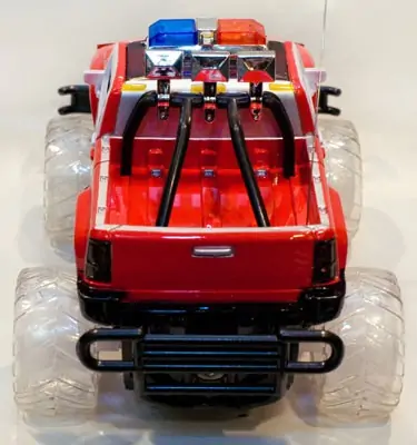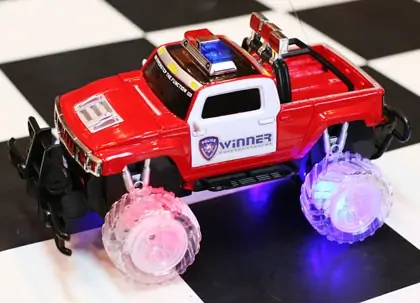 • Kopija policijskog džipa koji se viđa samo u filmovima, sa veoma upadljivim transparentim gumenim točkovima koji tokom vožnje svelte crvenom i plavom bojom.