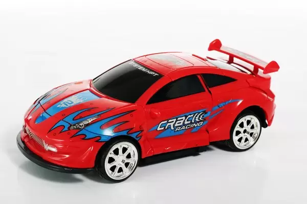 Veoma popularna igračka automobil na daljinsko upravljanje zbog velikih mogćnosti i zabave koju pruža korisniku. Pored dobrih manevarskih sposobnosti, auto se raspada prilikom sudara sa drugim automobilom ili nekim čvrstim predmetom u toku vožnje propraćen sa zvučnim efektima udarca i lomljavine. Jednostavnim pritiskom na dugme, automobil se vraća u početni položaj. Interesantan igračka kako za mlađu tako i za stariju decu. Daljinski poseduje tri kanala: dva za upravljanje pravcima, napred-nazad, levo-desno i kanal sa dva tastera za sklapanje automobila u početni oblik. Različite boje vozila automobila za decu imaju različite frkevencije tako da se istovremeno može voziti više istih modela.