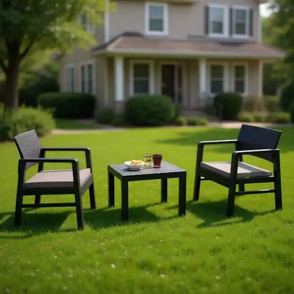 • Fotelje su udobne i pružaju vam mesto za opuštanje na terasi, balkonu ili u dvorištu. Sivi jastuci dodaju udobnost i estetiku, čineći sedenje još prijatnijim. Ovaj set je idealan za opuštanje uz knjigu, šolju kafe ili razgovor sa prijateljima.