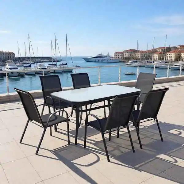 Baštenski set sto sa 6 stolica ElafonisosBaštenska Garnitura sa 6 Stolica i Stolom sa crnim Kaljenim StaklomBaštenska garnitura u ...