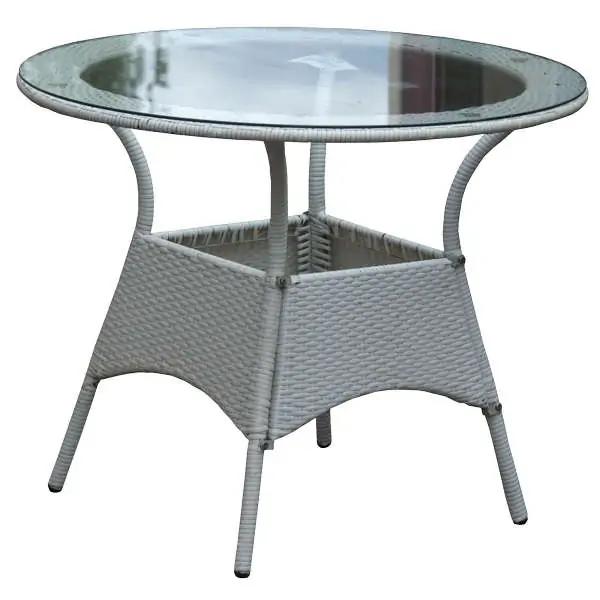 Baštenski sto od veštačkog ratana sa staklom beli 90cm