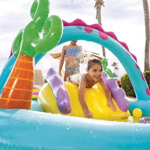 • Zabava na vodi za najmlađe! Ovaj INTEX bazen za decu dimenzija 333x229x112 cm pretvara dvorište u pravi mali vodeni park. Idealan je za letnje dane, pružajući osveženje i sate zabave uz razne dodatke koji čine igru još uzbudljivijom.