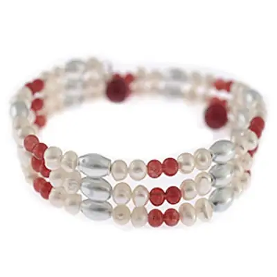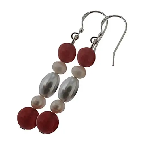 Biserna niska i biserne naušnice Crveni Kvarc - Hematit.Biserna niska od hematita «Crveni Kvarc»: Napravljena je od prirodnog bisera, u kombinaciji sa poludragim kamenjem, hematitom i crvenim kvarcom. Hematit je mineral, jedinjenje gvožđa i kao takav, može da se namagnetiše i bude trajni magnet. U ovoj kombinaciji presvučen je sedefom i bisernom emulzijom, oblika zrna pirinča. Magnetno polje hematita je jačine 900 gausa. Pri nošenju dolazi do pomeranja niske, što izaziva male elektromagnetne struje u telu. Niska se može nositi oko vrata, struka, ručnog zgloba ili noge, što stimuliše cirkulaciju, uklanja bolove u vratu, ramenima i leđima, uravnotežuje krvni pritisak i kompletan metabolizam. Bilo da su nastali u slatkoj ili morskoj vodi, biseri su vekovima simbol zdravlja, mudrosti, napretka, uspeha, strasti, luksuza, elegancije i ženstvenosti... Hematit se od davnina koristi kao amajlija. Veruje se da zbog visokog sjaja odbija negativnu energiju, štiti zaljubljene, stabilizuje emocije, smiruje um, i oslobađa od stresa. Nekada se crveni kvarc koristio za ljubavne čini, veruje se da pomaže u trenucima emotivnog stresa, donosi blagost i samopouzdanje. Biserne naušnice od hematita «Crveni Kvarc»: Napravljene su od prirodnog bisera, u kombinaciji sa poludragim kamenjem, hematitom i crvenim kvarcom. Hematit je mineral, jedinjenje gvožđa i kao takav, može da se namagnetiše i bude trajni magnet. U ovoj kombinaciji presvučen je sedefom i bisernom emulzijom, oblika zrna pirinča. Magnetno polje hematita je jačine 900 gausa. Pri nošenju dolazi do pomeranja naušnica, što izaziva male elektromagnetne struje u telu i stimuliše cirkulaciju, uklanja bolove u vratu, ramenima i leđima, uravnotežuje krvni pritisak i kompletan metabolizam. Bilo da su nastali u slatkoj ili morskoj vodi, biseri su vekovima simbol zdravlja, mudrosti, napretka, uspeha, strasti, luksuza, elegancije i ženstvenosti...Hematit se od davnina koristi kao amajlija. Veruje se da zbog visokog sjaja odbija negativnu energiju, štiti zaljubljene, stabilizuje emocije, smiruje um, i oslobađa od stresa. Nekada se crveni kvarc koristio za ljubavne čini, veruje se da pomaže u trenutcima emotivnog stresa donosi blagost i samopouzdanje.