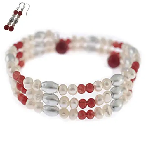 Biserna niska i biserne naušnice Crveni Kvarc - Hematit