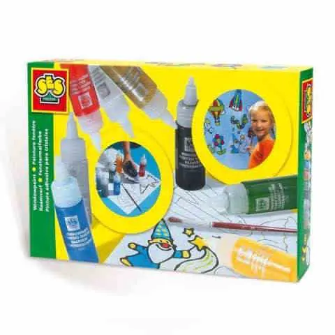 • Sadrži 8 boja, četku, šablone za oslikavanje prozora, stakla i drugih glatkih površina.