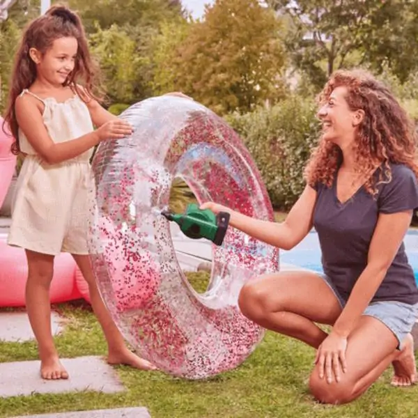 • Akumulatorska pumpa za vazduh Bosch EasyInflate 18V-500 omogućava brzo i praktično naduvavanje i izduvavanje igračaka za bazen, čamaca na naduvavanje, vazdušnih dušeka i drugih predmeta velike zapremine zahvaljujući maksimalnom protoku vazduha od 530 l/min; crevo od 50 cm i prekidač za jednostavno uključivanje i isključivanje olakšavaju rukovanje, dok kompaktna konstrukcija u kombinaciji sa tri priložene mlaznice za ventile različitih veličina i praktičnom torbom za odlaganje omogućava jednostavan transport do bazena, jezera ili na kampovanje; pumpa pripada sistemu 18V POWER FOR ALL, što znači da se za sve 18V POWER FOR ALL alate može koristiti jedan isti akumulator.