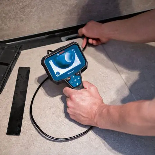 • Inspekciona kamera GIC 12V-4-23 C Professional je idealan alat za HVAC instalatere, vodoinstalatere, automehaničare i električare, poseduje veliki monitor od 4,3” sa prikazom visoke definicije od 800 x 480 piksela koji omogućava intuitivnu analizu cevi, kanala i teško dostupnih mesta, funkcija pokazatelja nagore olakšava određivanje orijentacije slike, ergonomski dizajn i robusna konstrukcija omogućavaju korišćenje na zahtevnim lokacijama, glava kamere ima IP67 zaštitu od prašine i kratkotrajnog potapanja u vodu, dok alat ima IP54 zaštitu od prašine i prskanja vode. Kamera je pogodna za pregled unutrašnjosti razvodnih kutija, cevi, šupljina u zidovima, hidrauličkih sistema i primene u automobilskom sektoru. Fotografije se lako prebacuju pomoću USB-C kabla, što omogućava jednostavnu dokumentaciju i analizu podataka.
