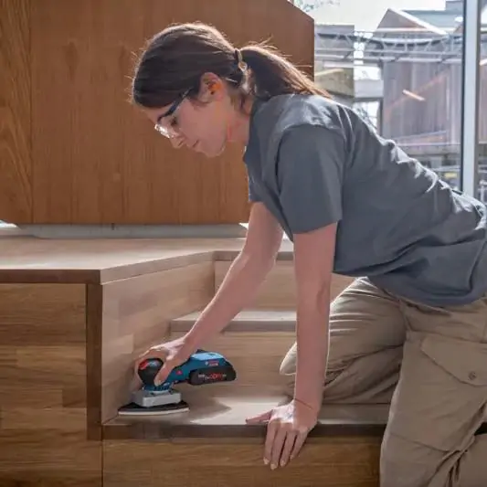 • GSS 18V-13 Professional pruža odličnu kontrolu pri radu na većim površinama zahvaljujući veoma dobrom balansu alata i težištu koje je približeno obratku. Ergonomski oblik oslonca za dlan i rukohvata omogućava sigurno i udobno držanje u toku rada. Motor bez četkica u kombinaciji sa Bosch profesionalnim sistemom od 18 V obezbeđuje brzo napredovanje u radu, a idealan učinak se postiže uz ProCORE18V 4.0Ah akumulator. Upravlja se intuitivno, dok sistem zamenljivih brusnih ploča olakšava prilagođavanje različitim primenama. Ovaj alat je namenjen za osnovno brušenje, međubrušenje, uklanjanje lakova i završnu obradu površina. Pogodan je za rad na drvetu, furniru, laku, gitu, kao i na mineralnim i akrilnim materijalima. Kompatibilan je sa Bosch Click & Clean sistemom za efikasno usisavanje prašine i profesionalnim 18 V sistemom, kao i sa AMPShare akumulatorima drugih brendova. Poseduje vreću za prašinu, podešavanje brzine i tri zamenljiva brusna tanjira različitih dimenzija sa prihvatom na čičak, što osigurava jednostavnu i brzu zamenu brusnog papira.