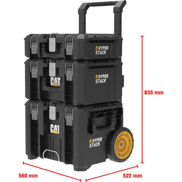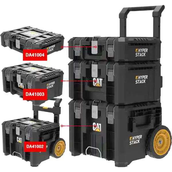 • CAT kofer za alat DA41005 predstavlja modularni, trostepeni sistem na kolicima namenjen za organizovano skladištenje, zaštitu i lako prenošenje alata. Sastoji se od tri međusobno povezive kutije – DA41002, DA41003 i DA41004 – koje se mogu koristiti zajedno ili pojedinačno, u zavisnosti od potreba.