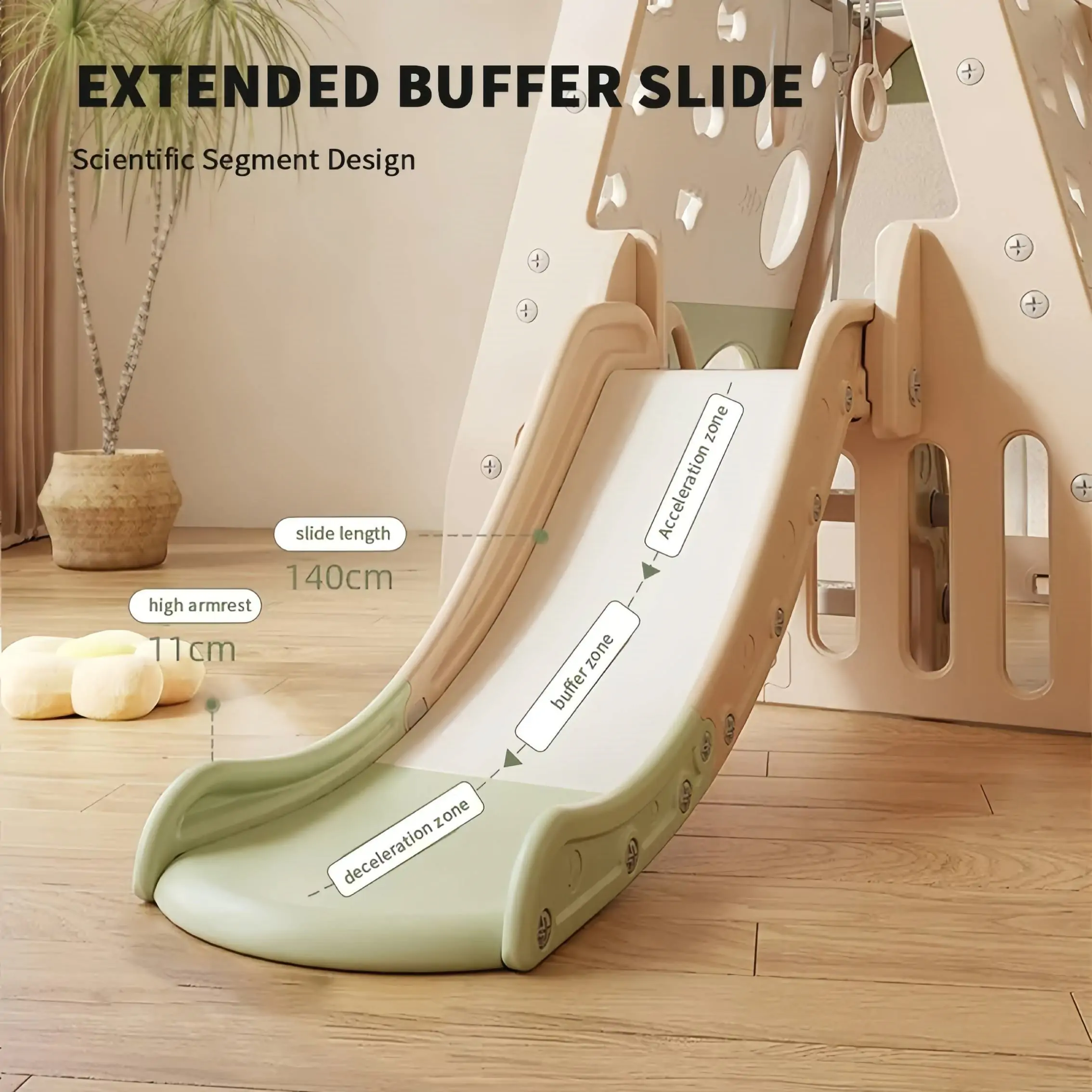 • Set uključuje tobogan za uzbudljivo spuštanje, ljuljašku koja donosi osmeh svakom detetu, penjalicu za razvoj snage i koordinacije, kao i koš za loptu koji podstiče sportsku igru i socijalizaciju. Svaki element je pažljivo osmišljen kako bi igra bila bezbedna, a montaža jednostavna, dok dimenzije od 255,3 cm dužine i 133,7 cm visine omogućavaju dovoljno prostora za igru i aktivnosti. Nosivost tobogana je do 40 kg, a ljuljaške do 25 kg, što ih čini pogodnim za decu uzrasta od 1 do 10 godina. Čarobna kućica za igru i smeh pruža detetu prostor u kojem svakodnevno može da stvara uspomene, razvija motoriku, kreativnost i socijalne veštine, pretvarajući svaki trenutak igre u nezaboravnu avanturu i radost koja traje.