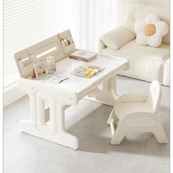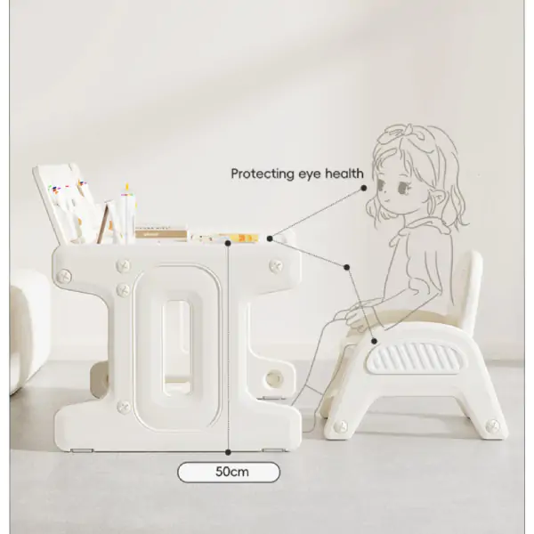 • Dodatni prostori za odlaganje knjiga, bojica i pribora omogućavaju detetu da uvek ima sve na dohvat ruke, a set uključuje i olovku za crtanje i sunđer za brisanje, što omogućava beskrajne sate kreativne igre i učenja. Izrađen od visokokvalitetnog HDPE materijala, koji se koristi u prehrambenoj industriji, radni set je izdržljiv, stabilan i potpuno siguran za decu.