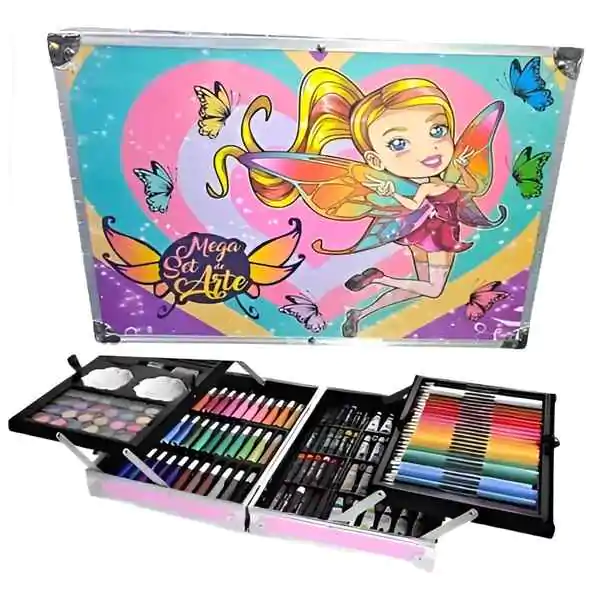 • U setu se nalaze vodene boje, voštane pastele, markeri, drvene bojice i četkice, što omogućava različite tehnike crtanja i slikanja. Svaki element izrađen je od bezbednih i kvalitetnih materijala, pogodnih za decu. Tema “Vila” donosi čarobnu i razigranu atmosferu koja inspiriše male umetnike da stvaraju svoje bajkovite svetove.