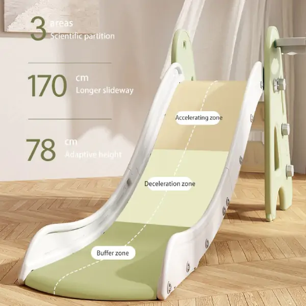 • Učinite svaki dan posebno zabavnim za vaše mališane uz ovaj fantastičan dečiji tobogan sa košem, idealan za igru u unutrašnjem prostoru doma! Zahvaljujući očaravajućem zeleno-belom dizajnu, savršeno se uklapa u svaku prostoriju i donosi osveženje koje će obradovati i roditelje i decu. Sa dužinom od 179 cm, visinom od 78 cm i širinom od 47 cm, ovaj tobogan pruža dovoljno prostora za bezbednu i nesmetanu igru, uz maksimalnu nosivost od 40 kg. Izrađen je od visokokvalitetnog HDP materijala koji se koristi u prehrambenoj industriji, potpuno bezbednog, netoksičnog i otporanog na habanje, uz ekološki prihvatljivu izradu po najvišim evropskim standardima. Lagan je i jednostavan za pomeranje, a stabilna konstrukcija i široka baza osiguravaju sigurnu igru bez klizanja. Dodatni koš za lopticu podstiče sportsku aktivnost, razvoj motorike i koordinacije, dok brza i jednostavna montaža omogućava lak transport i skladištenje. Ovaj tobogan pruža sate neprekidne zabave, podstiče fizičku aktivnost i kreativnost, a mališanima donosi radost, smeh i nezaboravne trenutke koji obogaćuju svaki porodični dan.