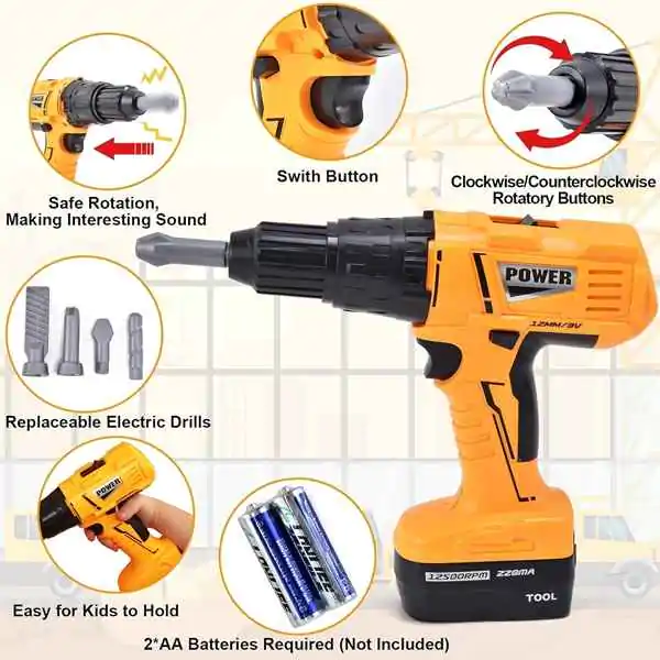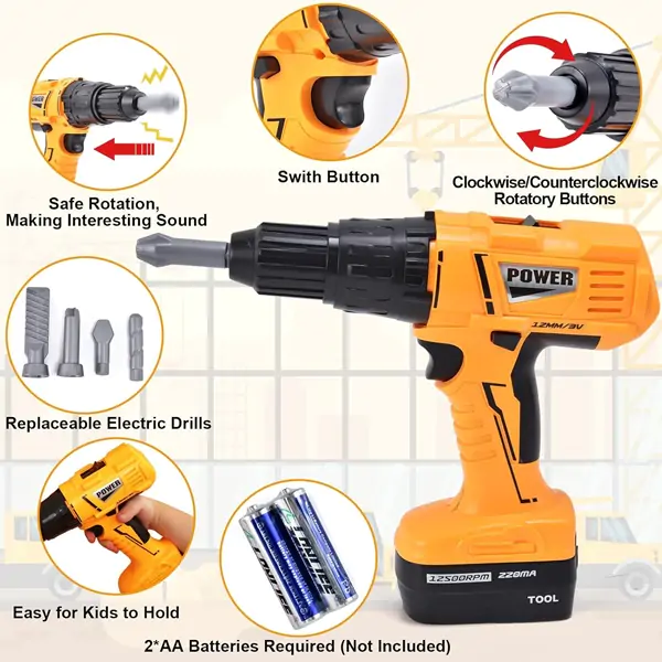 • Zvučni efekti – realistični zvuci bušilice i alata dodatno motivišu dete na igru i istraživanje.