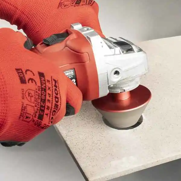 • Dijamantski razvrtac stožastog oblika dimenzija 5–50 × 45 mm namenjen je za povećavanje, poravnavanje i oblikovanje postojećih otvora u keramici, granitu, mermeru, porculanu i drugim tvrdim materijalima. Zahvaljujući M14 navoju, kompatibilan je sa većinom ugaonih brusilica, što omogućava jednostavnu i brzu montažu bez potrebe za dodatnim adapterima.