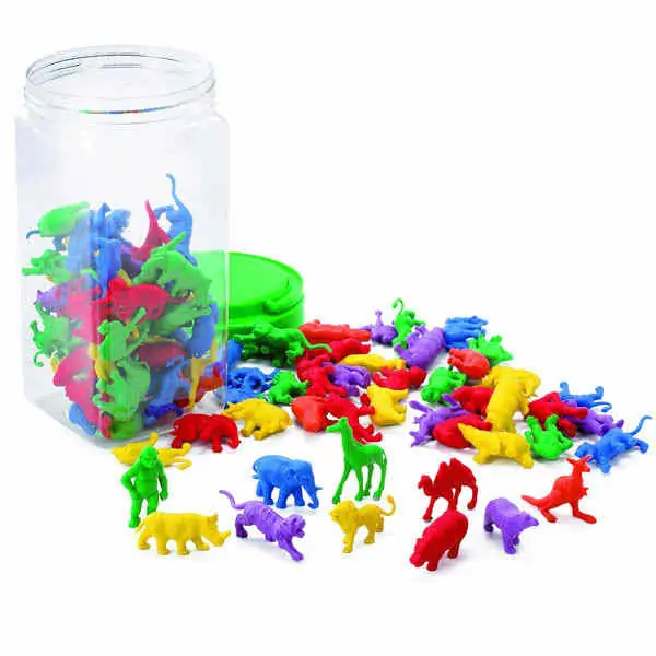 • Set od 120 gumenih figura divljih životinja u 10 različitih oblika ( vrsta - žirafa, lav, nosorog, kengur, slon.. ) i 6 boja.