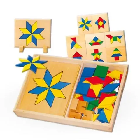 • Tangram umetaljka-slagalica, sa drvenim tablama-postoljima za slaganje blokova različitih zadatih kompozicija po boji, obliku, položaju do konačne zadate figure.