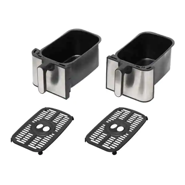 • Dupla friteza na vruć vazduh HGAF29 predstavlja funkcionalan i moderan kuhinjski aparat namenjen korisnicima koji žele zdraviju pripremu hrane, bez prženja u ulju, uz zadržavanje sočnosti i hrskavosti omiljenih jela. Sa impresivnom snagom od 2000 W i kapacitetom od 2 × 4,5 litara, omogućava istovremenu pripremu velikih količina hrane ili kombinovanje različitih namirnica bez mešanja ukusa i mirisa. Ovo je idealno rešenje za porodice, ljubitelje organizovanih obroka i sve koji žele brzu i praktičnu pripremu hrane.