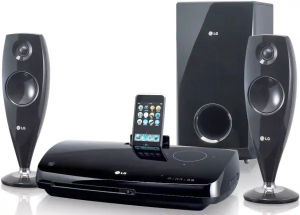 300 W izlaz iPod veza pomoću držača VSM (Virtual Sound Matrix)DivX reprodukcija Ulaz za prenosne uređaje USB snimanje Full HD poboljšanje Kontrola pločicom osetljivom na dodirHDMIHDMI (engl. High Definition Multimedia Interface – multimedijalni interfejs visoke rezolucije) predstavlja prvi nekomprimovani, audio i video interfejs koji podržava cela industrija. HDMI pruža interfejs između svakog audio/video izvora, kao što je set-top box uređaj, DVD plejer i A/V risiver i audio i/ili video monitora, kao što je digitalna televizija (DTV). HDMI podržava video standardne, poboljšane ili visoke rezolucije, kao i višekanalni digitalni audio prenos preko jednog kabla. On prenosi sve ATSC HDTV standarde i podržava 8-kanalni digitalni audio signal uz propusni opseg koji je dovoljno veliki za buduća poboljšanja.USB snimanjeKonvertuje muziku sa muzičkih CD diskova u MP3 datoteke i prenosi ih na USB memoriju ili MP3 plejere.Kontrola pločicom osetljivom na dodirSenzacionalna pločica osetljiva na dodir koja kontroliše funkcije kao što su otvaranje/zatvaranje/jačina zvuka +/jačina zvuka -/preskakanje/zaustavljanje/ reprodukovanje i slične opcije.VSM (Virtual Sound Matrix)VSM poboljšava iskustvo slušanja sistema kućnog bioskopa tako što omogućava da se zvuk kreće tečnije kroz prostoriju. Ovo se postiže stvaranjem „virtuelnih zvučnika“ koji usmeravaju zvuk. Na primer, VSM sistem na 2.1 kućnom bioskopu kreira efekat „virtuelnog“ 5.1 Surround zvuka tako da se čini da zvuk dolazi iz zadnjeg dela prostorije.Ulaz za prenosne uređajeFull HD poboljšanjeUobičajeno TV emitovanje ili DVD diskovi pružaju 576 x 480p piksela, najnoviji DHTV aparati mogu da prikažu 1920 x 1080p. Full HD poboljšanje kompanije LG rešava ovaj problem. Ova funkcija konvertuje SD signal u 1080p signal koji daje slike visoke rezolucije.