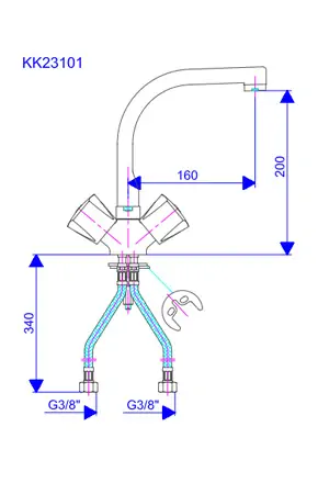 Dvoručna slavina - baterija za sudoperu - lavabo sojećasa pokretnim ovalnim ovalnim izlivom 180mm Keramic KK23101 ROSAN