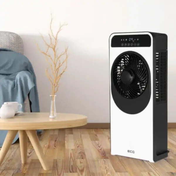 • ECG Mr. Fanboy je inovativni 2-u-1 podni ventilator i ovlaživač vazduha koji će unaprediti atmosferu u vašem domu ili kancelariji zahvaljujući nezavisnim funkcijama ventilacije i osvežavajuće vodene magle. Ovaj kompaktni uređaj savršen je za manje prostore, a jednostavno pomeranje omogućavaju integrisana ručka i četiri dupla točkića. Ventilator sa propelerom od 20,5 cm i 360° cirkulacijom vazduha nudi čak 12 brzina, dok nezavisni sistem za ovlaživanje koristi uklonjivi rezervoar za vodu od 1,5 litara (sa indikatorom nivoa), koji obezbeđuje do 26 sati neprekidnog osvežavanja uz pomoć vodene pumpe i ultrazvučne tehnologije. Obe funkcije mogu raditi istovremeno ili odvojeno, a u slučaju nestanka vode uređaj automatski upozorava. Potpunu kontrolu pružaju LED displej sa touch panelom, praktični daljinski upravljač i tajmer za automatsko isključivanje do 9 sati, čineći ECG Mr. Fanboy idealnim izborom za prijatniji i svežiji vazduh tokom celog dana.