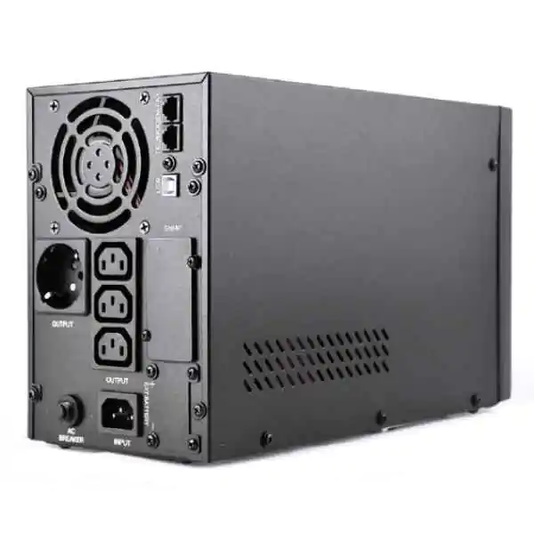 • Čisti sinusni izlaz (THD ≈ 5% pri linearnom opterećenju, PF > 0,8) čuva napajanja sa aktivnim PFC-om, motore pumpi, cirkulacione pumpe, kotlove i sofisticiranu laboratorijsku/telekom opremu. LCD ekran + LED indikatori pružaju jasan uvid u status, opterećenje i kapacitet baterije, dok zvučni i vizuelni alarmi upozoravaju na prenapon, preopterećenje i nisku bateriju. Putem USB interfejsa i RJ45 porta, uz opcione slotove (suvi kontakti / SNMP), moguće je centralizovano nadgledanje i automatizovano gašenje servera ili radnih stanica.