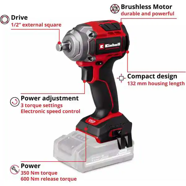 Einhell Professional TP-CW 18/350-C Li BL Solo predstavlja kompaktan i snažan akumulatorski udarni odvijač namenjen zahtevnim radovima zavrtanja i odv ...