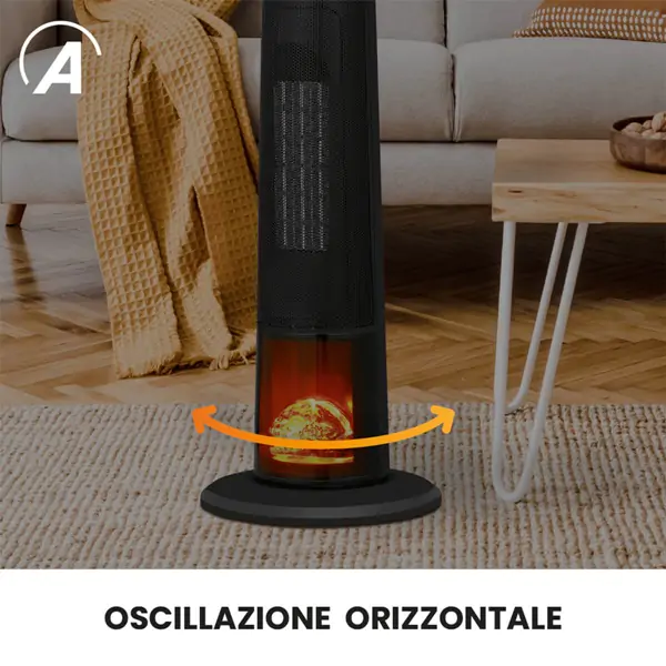 • Komande se upravljaju preko touch panela ili praktičnog daljinskog upravljača, a ugrađena horizontalna oscilacija omogućava ravnomerno širenje toplote u prostoriji. Za maksimalnu bezbednost, uređaj je opremljen prekidačem protiv prevrtanja i zaštitom od pregrevanja, što ga čini sigurnim i za dužu upotrebu.