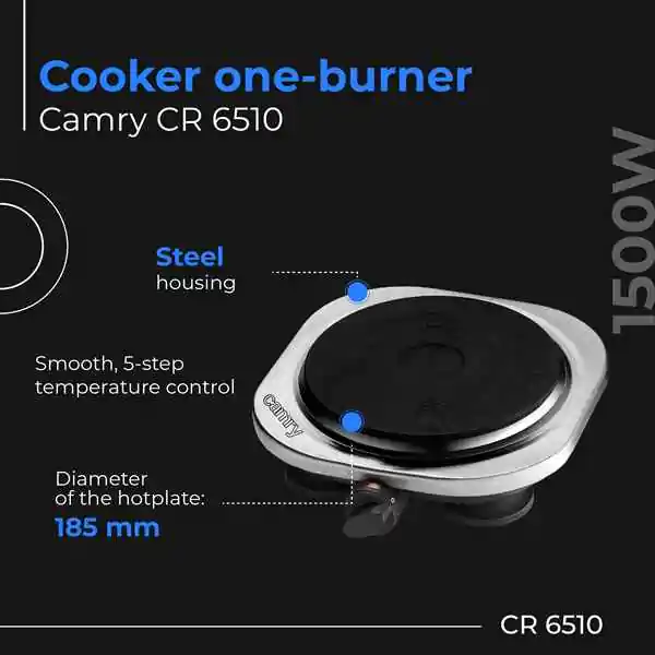 • Ako tražite jednoringlni rešo, mini električni šporet ili prenosnu ploču za kuvanje, Camry CR 6510 je pouzdan, kompaktan i ekonomičan izbor za svakodnevnu upotrebu.