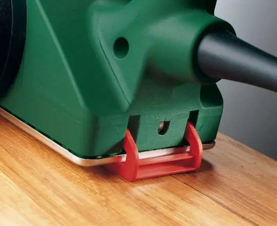 • Papuča za odlaganje koja se sama otklapa – sprečava oštećenje radnog predmeta ili noža rendisaljke kod odlaganja rendisaljke