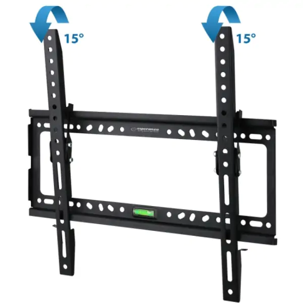 • Metalni, čvrsti zidni nosač za televizore veličine od 26" do 70". Lako se postavlja i kompatibilan je sa VESA standardom 75 × 75 – 400 × 400. U paketu dolazi mala libela za jednostavno nivelisanje nosača. Nosač ima podesiv nagib.