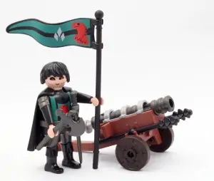 • Set sadrži figuru viteza sa mačem, zastavom i top sa projektilima.